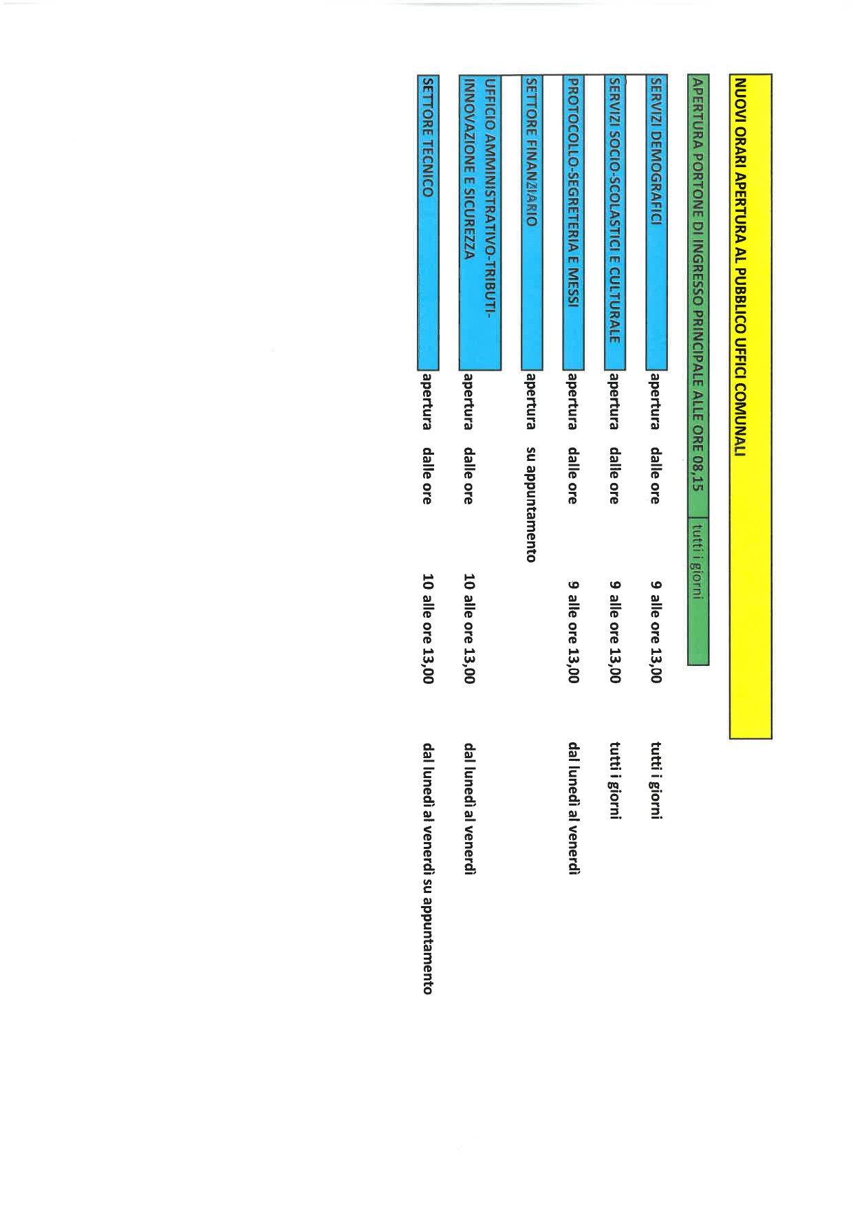 Nuovi Orari al pubblico degli Uffici comunali