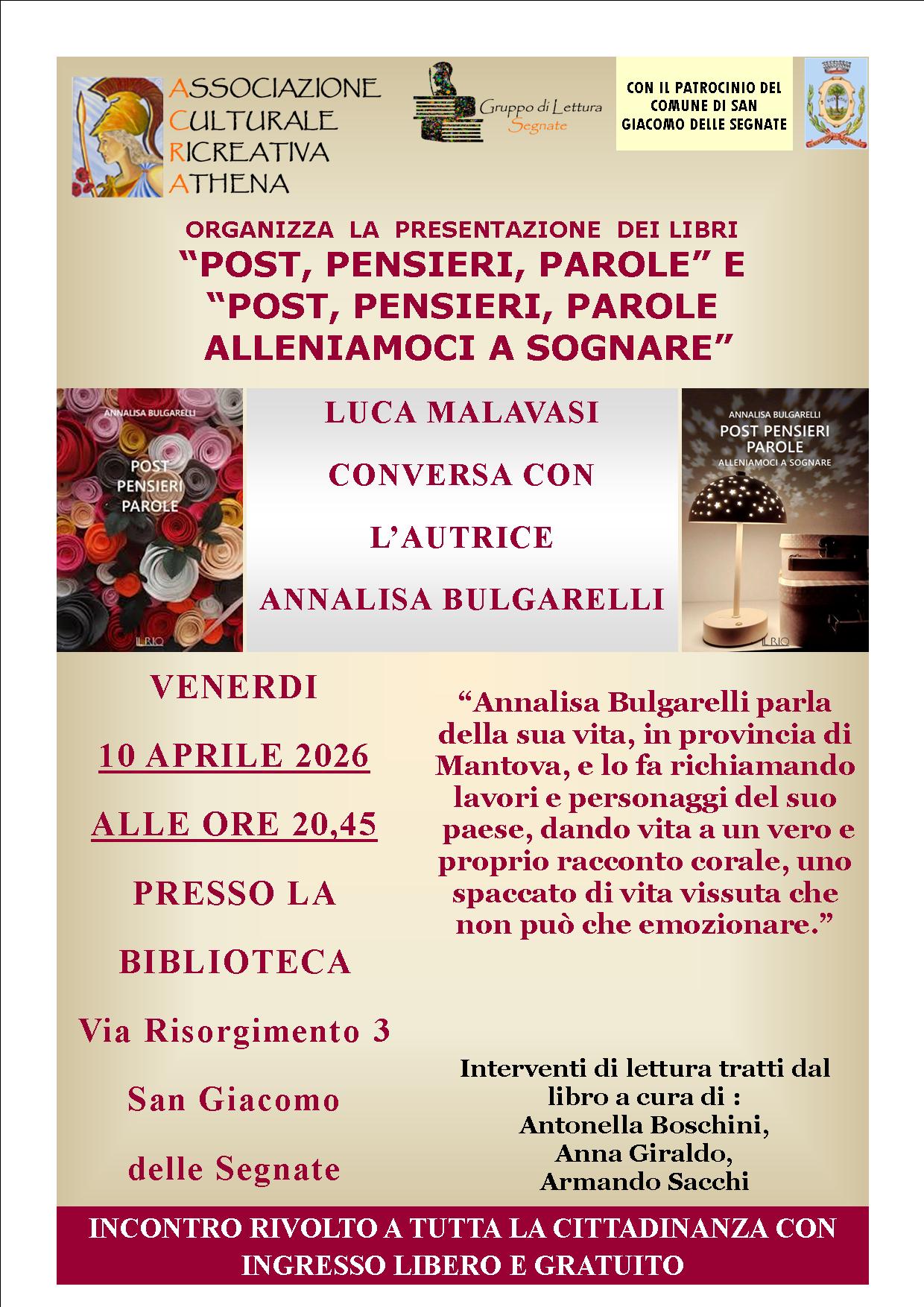 Venerdì 10 Aprile 2026 alle ore 20,45 presso la Biblioteca